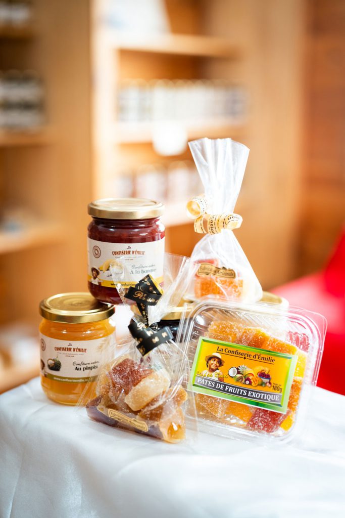 À l’origine, les LEDENON étaient agriculteurs, cultivant divers fruits (ananas, papaye, letchi, banane). Face à l’excès de production, ils ont lancé la confiserie en 1985, dans leur cuisine. En 1990, « La confiserie d’Emilie» est née avec le soutien de la chambre des Métiers et des Collectivités Locales. Aujourd’hui, elle transforme plus de 10 tonnes de fruits exotiques par mois.