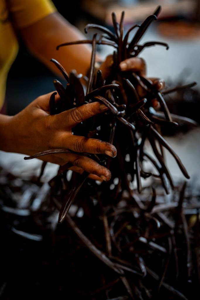 Etape par étape, la vanille arborera sa plus belle couleur ; une lente maturation en malle lui confèrera ses arômes les plus subtils. Perpétuant son savoir-faire au fil des années, elle ne cesse de valoriser le travail artisanal de ses adhérents et des ses salariés en composant avec la demande grandissante de ses clients soucieux de se procurer une vanille d’exception.
