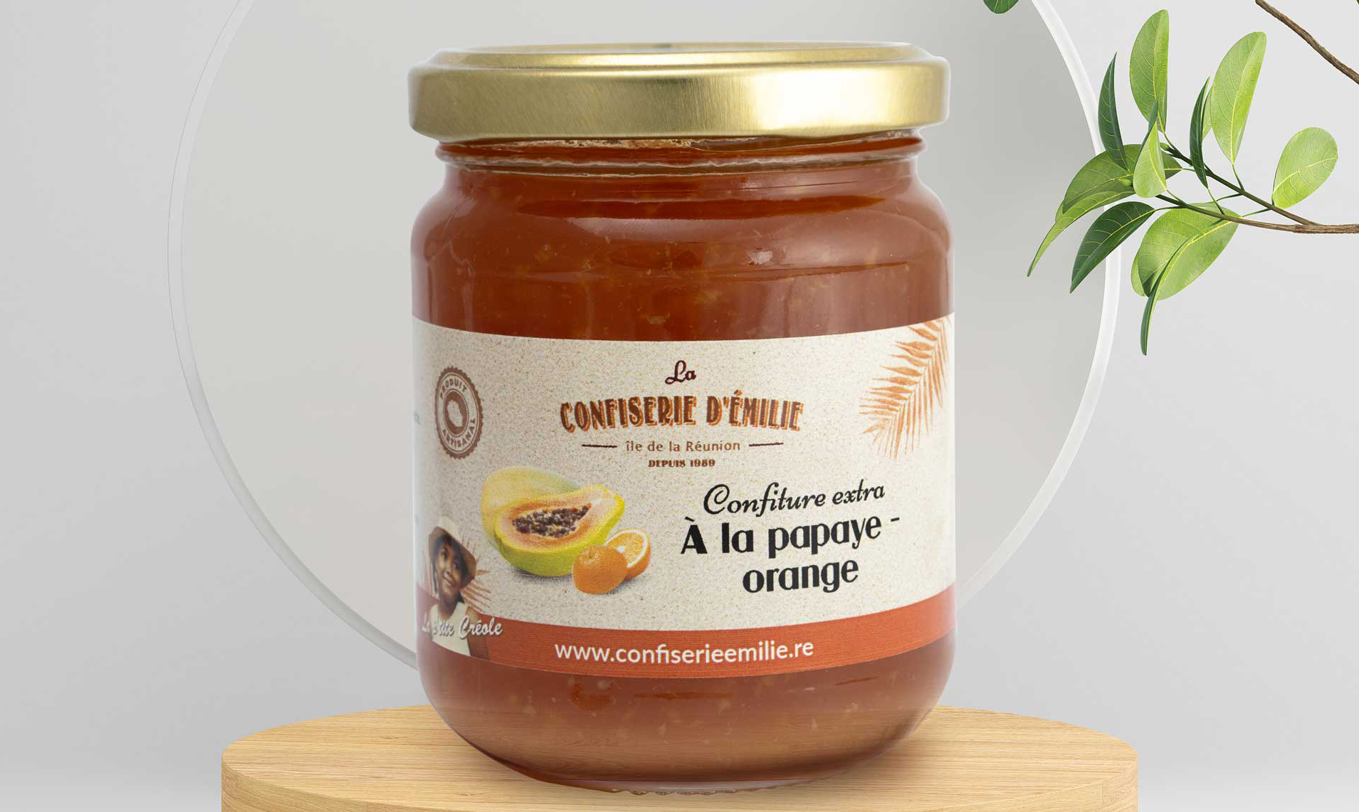 Papaya orange fine jam Confiture extra papaye / orange Goûteuse et artisanale, la confiture à la papaye/ orange de La confiserie d'Émilie est à déguster tartinée ou à la cuillère pour les plus gourmands.